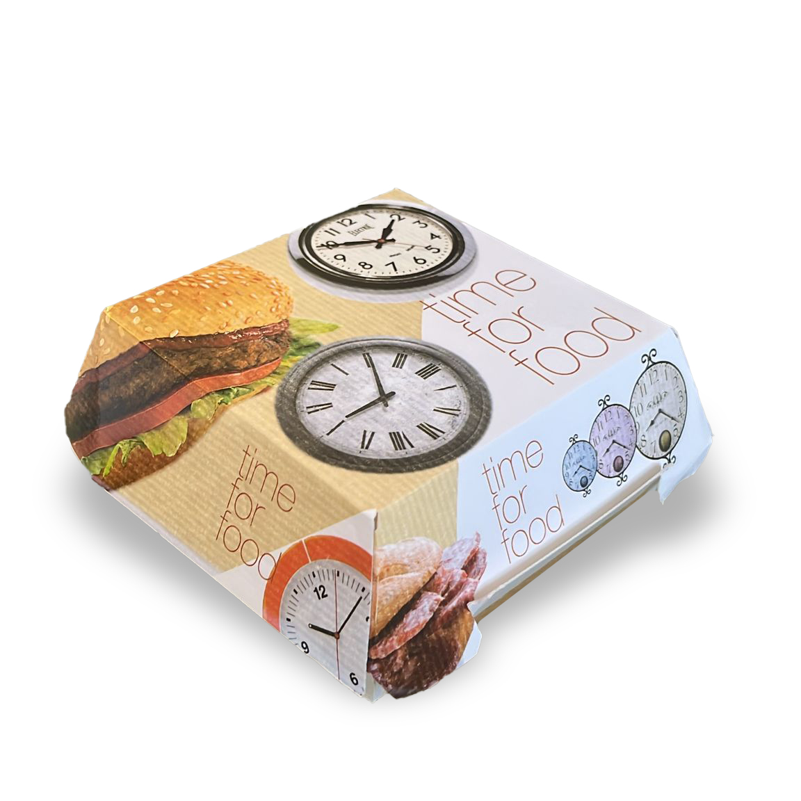 Box hamburger in cartoncino antigrasso bianco con stampa generica.