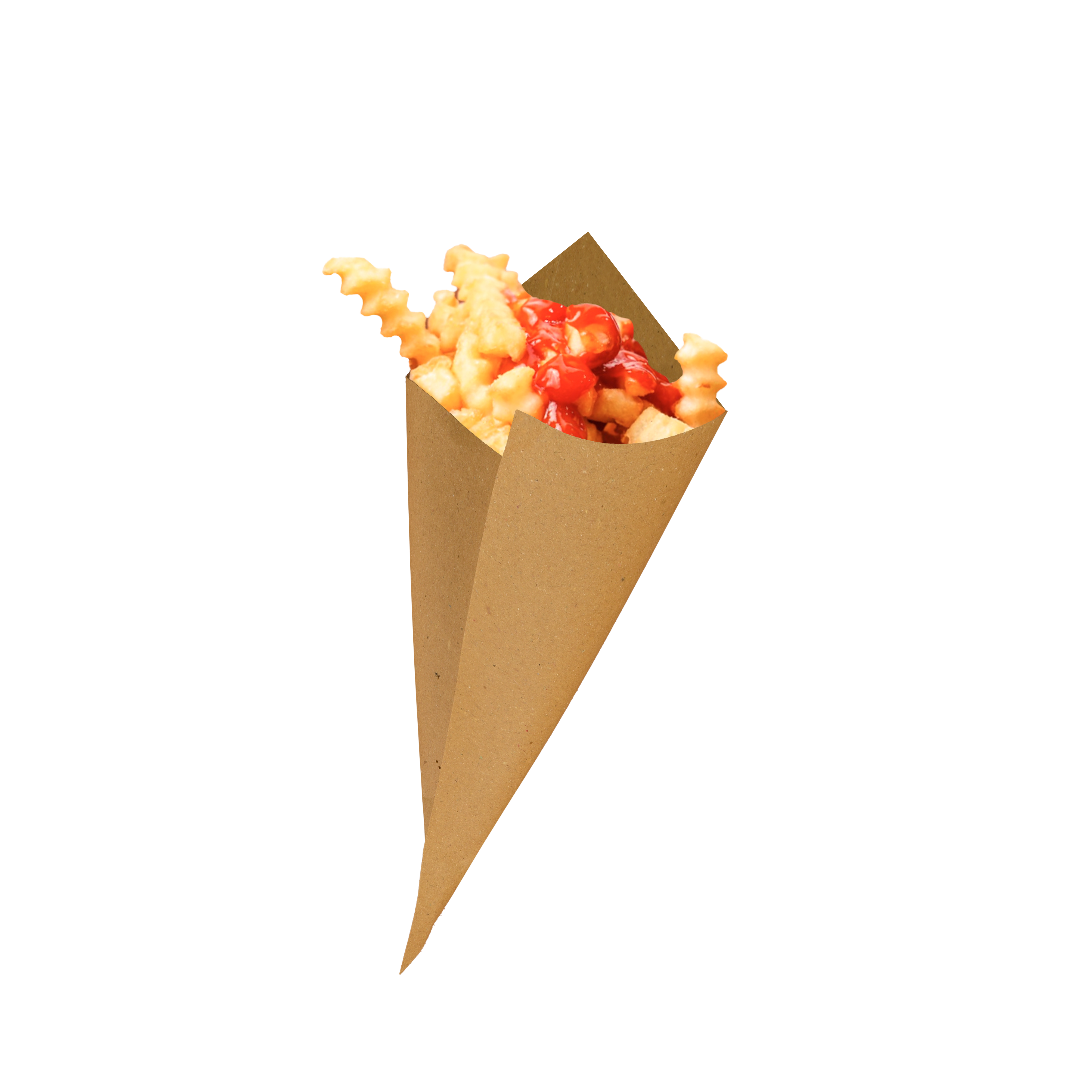 I coni porta patatine sono realizzati in carta paglia politenata avana e sono idonei al contatto con tutti i tipi di alimenti.