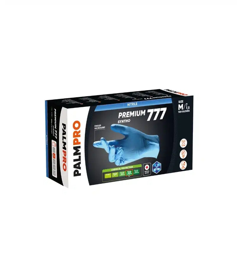 Guanti nitrile syntho monouso di colore blu.
