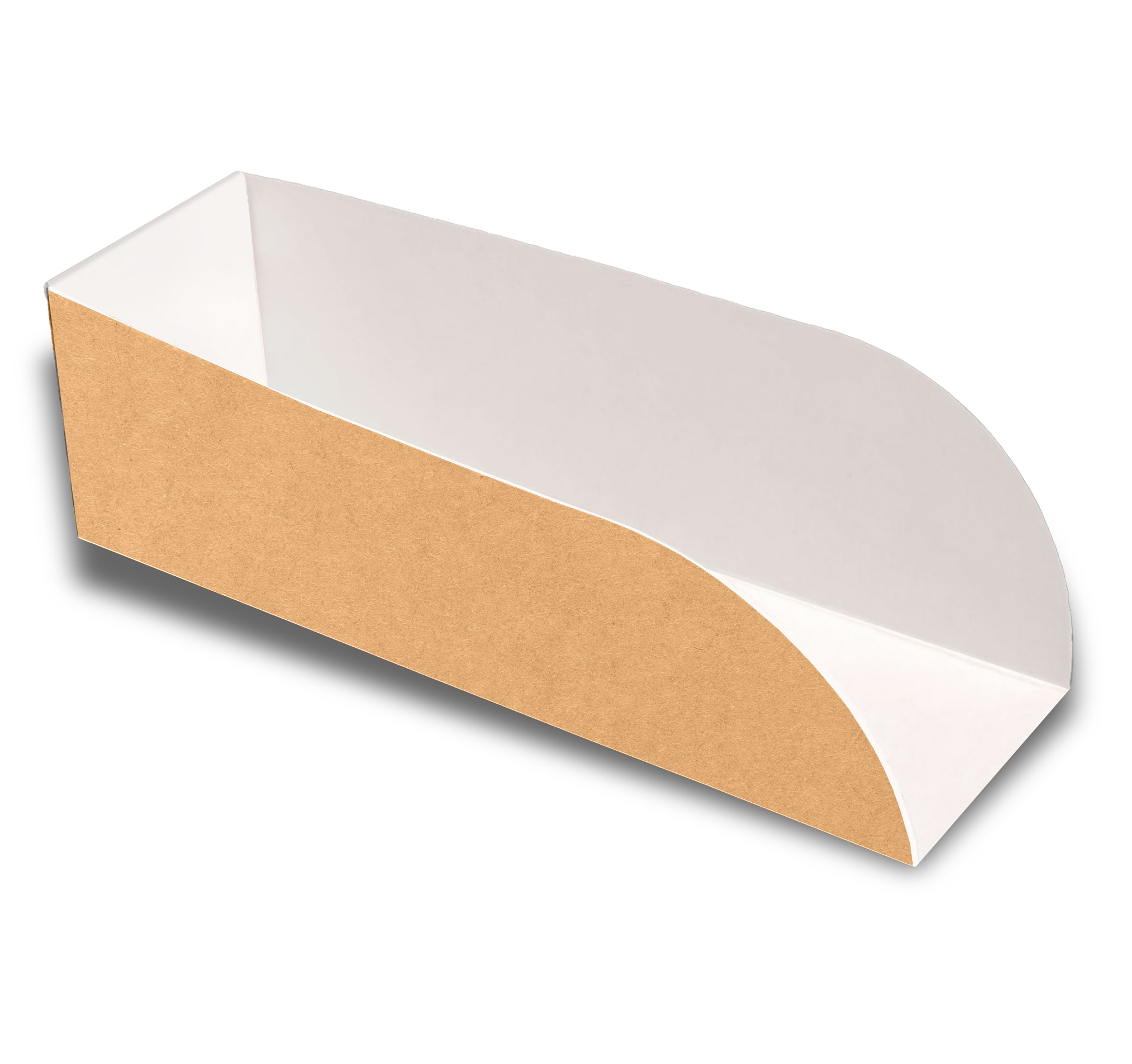 Astuccio aperto in cartoncino antigrasso avana utilizzato per contenere hot dog.