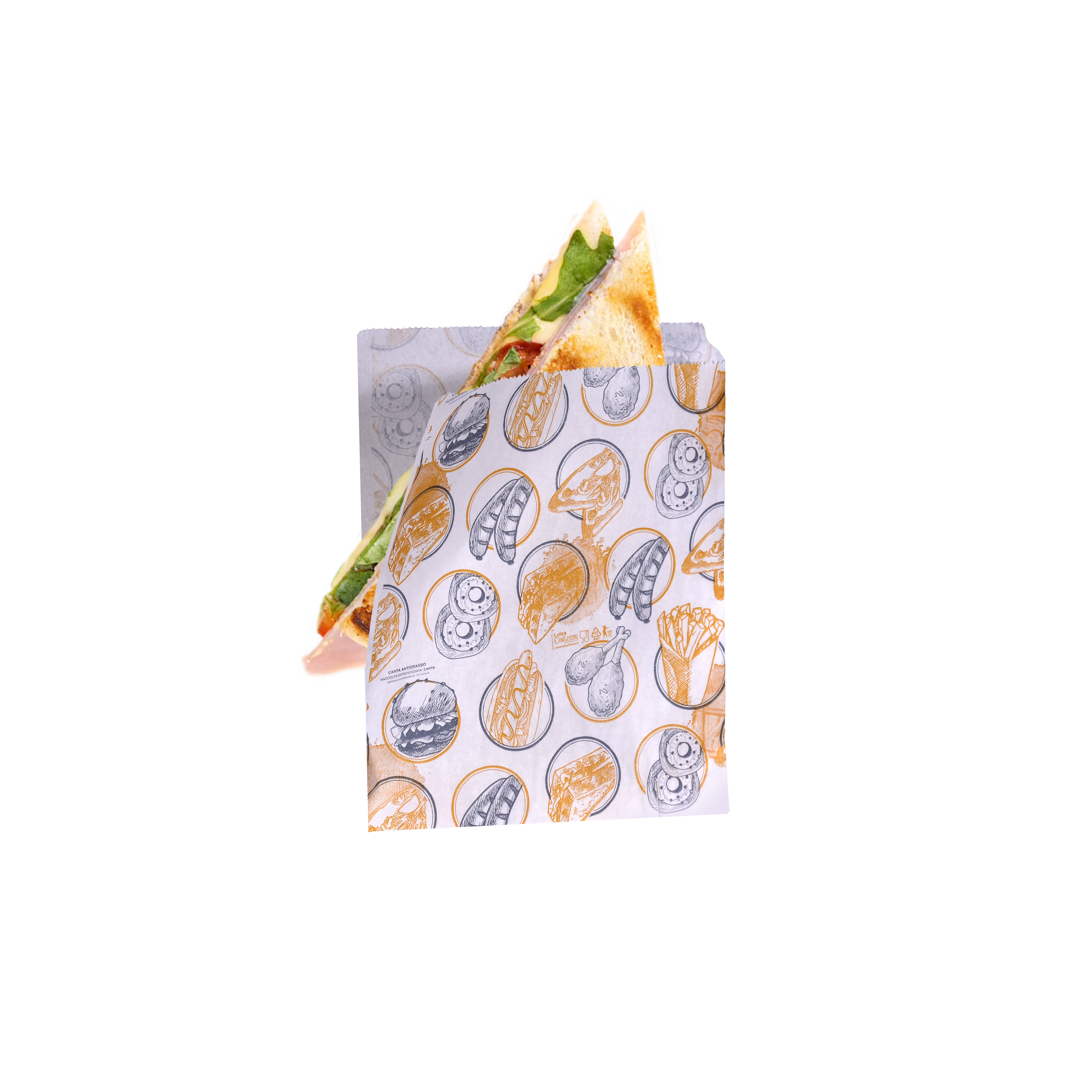 Sacchetto in carta antigrasso con stampa generica aperto due lati