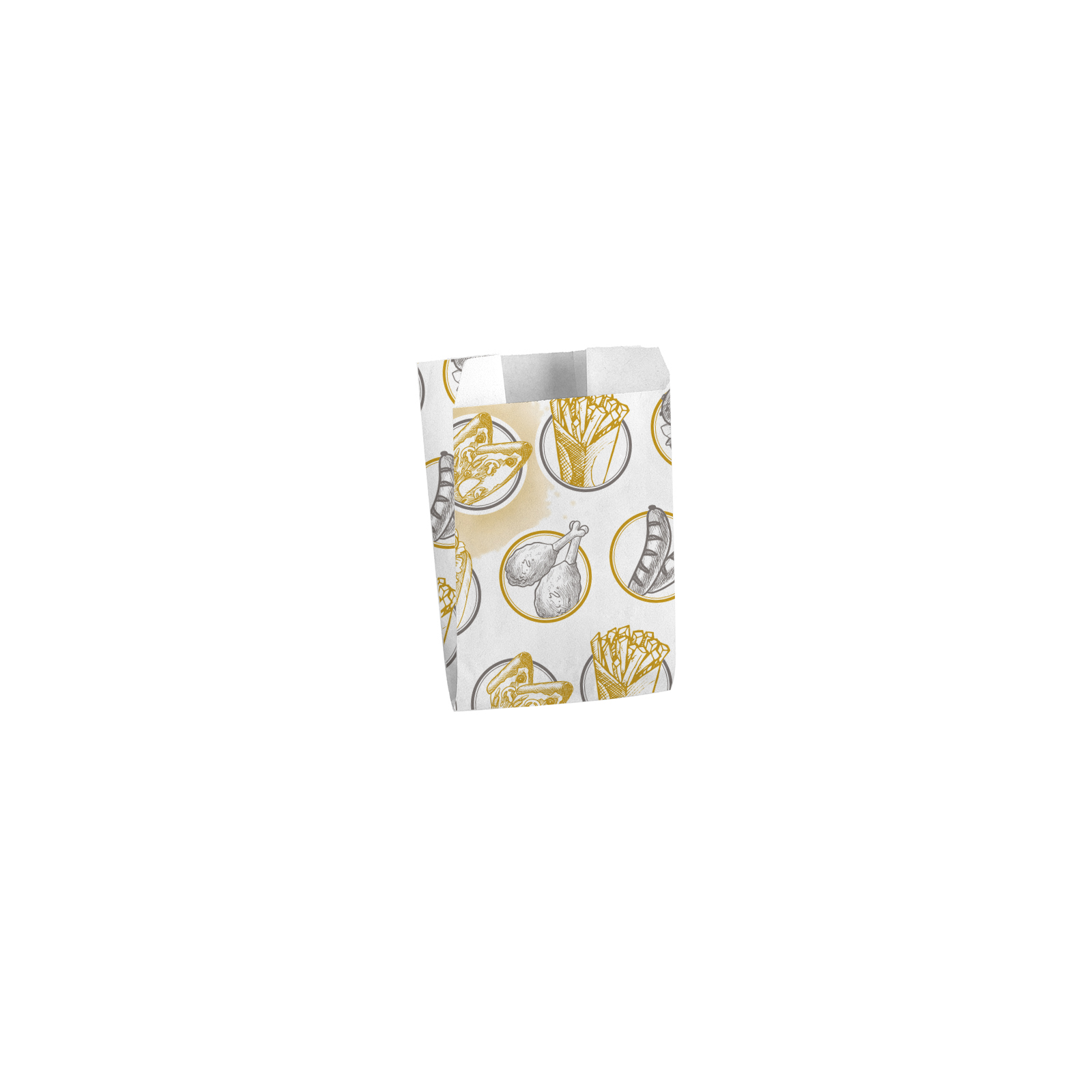 Grazie alla piccola dimensione del sacchetto è perfetto per contenere tutti i tipi di fritti, piccoli pezzi di rosticceria e porzioni di patatine.