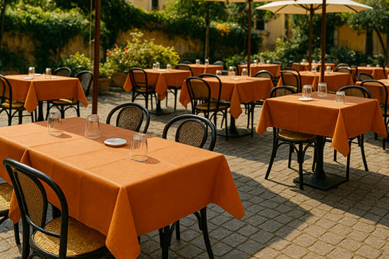 Le tovaglie monouso in tessuto non tessuto non sono perfette solo per l'interno, ma rappresentano una scelta eccellente anche per l'allestimento di spazi all'aperto. Che si tratti di un dehors, di una terrazza panoramica o di un evento in giardino, queste tovaglie garantiscono stabilità, resistenza e stile, anche in condizioni meno controllate rispetto a una sala interna.
